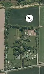 The other remaining 1870s concrete building is the gate house, located some distance away on the Rakaia Barrhill Methven Road. Wason's homestead was at the end of a drive starting at this gate house, on a cliff top overlooking the Rakaia River. The homestead burnt down not long after Wason had left the country, and a new homestead was built nearby. The gatekeeper's lodge originally had a slate roof, but this was later replaced by iron. The last family moved out in 1935. During the second world war, the iron was stripped off the empty building, and it fell into ruin.[30] A later owner, Colin McLachlan, donated the land and the ruin to the people of the district;[31] it is now vested in the Ashburton District Council.[30][32] The renovation began in 1970, with work carried out and financed by descendants of previous inhabitants of the building.[30] A plaque on the building states that it was reopened in March 1979 by the Prime Minister of the time, Robert Muldoon,[31] but his plane ran late and the opening ceremony was conducted by Colin McLachlan.[32] The gate house is fitted out as a museum, and viewing can be arranged through the Ashburton or Methven information centres.[30]