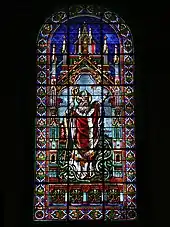 The Basilica-Cathedral contains twenty-eight stained glass windows which adorn the upper walls (clerestory) and are of English and French workmanship. The windows were the gifts of patrons and religious societies, such as the Society of the Holy Rosary and were installed between 1859 and 1905. The 35 stained glass windows in the ambulatory all date from 1954–55 and were the work of Gerald Earley and Company of Dublin; they constitute the largest collection of mid-20th Century Irish Arts and Crafts style stained glass windows in one building in the western hemisphere.