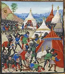 ![]() The Battle of Cassel on 23rd August 1328 by Hendrik Scheffer, 1837, Galerie des Batailles, Palace of Versailles | |||||||