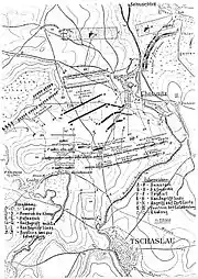 The Battle of Chotusitz, or Chotusice,[lower-alpha 2] sometimes called the Battle of Czaslau (today: Čáslav), took place on 17 May 1742, in Bohemia, now the Czech Republic; it was part of the 1740 to 1742 First Silesian War, itself a subsidiary of the wider War of the Austrian Succession.