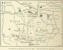 According to a contemporary source following initial victories, Ethem Pasha had some of his troops in Velestino (which was the theatre of a battle) and most in Pharsala. But there was a momentary pause after the second battle of Valestino. The new Greek prime minister Dimitrios Rallis was anxious to accept the mediation which the Great Powers were willing to undertake.[3] Failing to reach a compromise, Edhem Pasha marched from Phasla to the town of Domokos (Dömeke) on 17 May 1897. Domakos was the stronghold of the Greek army against the advancing Ottoman army.