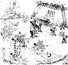 The Jin army assailed the city walls with siege ladders and the unprepared garrison gave their lives in a hasty defense. Li Yongfang and his lieutenant, Zhao Yipeng, decided to surrender on the condition that no one was to be harmed. Nurhaci agreed to the terms and entered the city. Li was made a commander in the Jin army and granted a granddaughter of Nurhaci as his concubine for his role in minimizing Jin losses. Li would be the first in a series of Ming defections.[1]