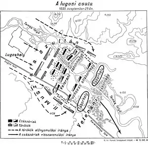 The Ottomans advanced from Lipova and clashed with the Christian army, General Veterani was unable to form a junction with the Imperial Army under Elector of Saxony Augustus II the Strong. The battle caused heavy casualties on both sides. Field Marshal Veterani was taken prisoner by the Turks and beheaded.[3]Captain Strahinja and Antonije Znorić, commanders of the units of Serbian Militia within Austrian army, were also killed in this battle.[4]