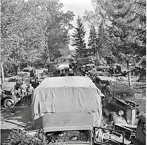 The battle commenced when advanced elements of the Soviet 43rd Rifle Division encountered the Finnish 8th Division in the forests around Porlampi on 30 August.[12] Both sides called for reinforcements. The Soviets were unaware (or only partially aware)[8] that the Finnish soldiers they were fighting had crossed Viipuri Bay, and it was incorrectly assumed that the 8th Division was part of the main body of the IV Corps (the IV Corps was in fact advancing unopposed to the north and east of the Soviet divisions.)[12] In the several days of fighting that ensued in the Porlampi area, the Finns employed motti skirmishing tactics to counter the superior Soviet numbers. The Finnish artillery was reported to have been particularly effective during the engagement as it disabled many soviet vehicles, blocking roads and creating bottlenecks.[9][13] Late in the day on 30 August the 43rd Rifle Division pushed the 8th Division out of Porlampi and into the nearby village of Somme, which lay several miles to the northwest. There the fighting continued throughout the night. On the morning of 31 August the main body of the IV Corps arrived, attacking the 123rd Rifle Division at Porlampi and the 115th Rifle Division at Ylasomme, an action which collapsed the north flank of the Soviet army. The Soviets were forced back, and the Finnish forces made ready to encircle them. However, the 8th Division was still engaged in heavy fighting with the 43rd Rifle Division to the northwest of town and was unable to complete the encirclement. Using the heavily forested terrain to their advantage, the 123rd and 115th Rifle Divisions withdrew southwest towards Koivisto.[12][9] Vyborg fell on 31 August, freeing up more Finnish forces to engage the remaining forces of the 23rd Army. The 43rd Rifle Division, which had advanced furthest west, was almost completely destroyed by the Finnish forces on 1 September. Some survivors retreated to the south and were evacuated from the Baltic coast by the Soviet Navy in November.[14]