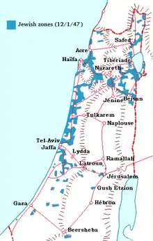The 1947–1948 civil war in Mandatory Palestine was the first phase of the 1947–1949 Palestine war. It broke out after the General Assembly of the United Nations adopted a resolution on 29 November 1947 recommending the adoption of the Partition Plan for Palestine.[5]