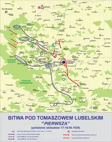 The Battle of Tomaszów Lubelski took place from 18 September to 20 September 1939 near the town of Tomaszów Lubelski. It was the second largest battle[2] of the Invasion of Poland (Battle of Bzura was the largest) and also the largest tank battle of the campaign. It resulted in the surrender of Army Krakow on 20 Sept. 1939.[3]