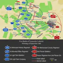 ![]() A Polish 7TP tank; 22 of these tanks participated in the battle.[1] | |||||||