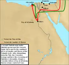 ![]() Map showing invasion of Egypt by Crusaders | |||||||