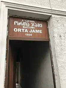 The Batumi Mosque (Georgian: ბათუმის მეჩეთი, batumis mecheti, orta jame[1]) is a mosque in Batumi, Adjara, Georgia, which is a home to a sizable Muslim community. It was commissioned by the family of Aslan Beg (the equivalent of duke) Khimshiashvili, a Muslim Georgian nobleman in 1886.[2] The walls of the mosque were painted by the Laz brothers. The mosque is popularly known as the "Jamia in the middle" ("ორთა ჯამე", orta jame) for it once stood in between two other mosques which have not survived.[3]