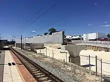 Just before Christmas 2020, the development application for the station received conditional approval from the Western Australian Planning Commission (WAPC). This allowed construction to commence in January 2021. During that month, the number of lanes on Whatley Crescent was reduced, and on-street parking was removed. The Principal Shared Path parallel to the railway line was relocated onto Whatley Crescent. The closure of the carparks south of the railway occurred after that, and then earthworks began.[60] Local businesses complained about the lack of parking, saying that had gone down since the removal of parking on Whatley Crescent.[61] In May 2021, Metronet provided $236,000 to the City of Bayswater to build 20 temporary parking bays.[62]