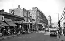 On 1 November 1926 the District line began a service between Edgware Road and Putney Bridge and the station was also renamed to Bayswater (Queen's Road) & Westbourne Grove.[6] From this date the MR operated all Inner Circle services apart from a few District line operated Sunday services.[16] The station was then renamed again to Bayswater (Queen's Road) in 1933.[6] In 1946, it was renamed to Bayswater (Queensway) but the suffix was gradually dropped.[6] In 1949, the service was separately identified on the tube map as the Circle line for the first time.[7]