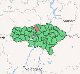 Bazarno-Karabulaksky District (Russian: База́рно-Карабула́кский райо́н) is an administrative[1] and municipal[7] district (raion), one of the thirty-eight in Saratov Oblast, Russia. It is located in the north of the oblast. The area of the district is 2,300 square kilometers (890 sq mi). Its administrative center is the urban locality (a work settlement) of Bazarny Karabulak.[3][2] Population: 31,841 (2010 Census);[4] 36,571 (2002 Census);[10] 36,391 (1989 Census).[11] The population of Bazarny Karabulak accounts for 30.9% of the district's total population.[4]