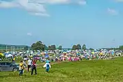 Since 1993 a yearly "Bazhov Festival" (Bazhovka) is held on the summer solstice, the Kupala Night, originally at the Lake Chebarkul.[31] The festival receives the support of the local administration of Chelyabinsk Oblast, the ministries of culture of Bashkortostan, Kazakhstan and Uzbekistan, local entrepreneurs, and over the years it received appreciation by many public figures, including Nikita Mikhalkov, and was attended amongst others by Lev Anninsky and Altynshash Jaganova.[32] Often, tickets for railway and airplane transport to the festival were provided free of charge, trains of the Moscow–Chelyabinsk route were decorated according to Bazhovite themes, and shields painted with mystical Bazhovite icons were hung throughout the cities.[33] Local troops of the Russian army also took part in the festivity.[33]