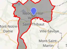Bazoches-sur-Vesles (French pronunciation: [bazɔʃ syʁ vɛl], literally Bazoches on Vesles, before 1943: Bazoches)[2] is a former commune in the department of Aisne in the Hauts-de-France region of northern France.[3] On 1 January 2022, it was merged into the new commune of Bazoches-et-Saint-Thibaut.[4]