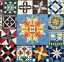 Mount Ulla Barn Quilt, the largest community barn quilt in the United States in 2019, is on the wall of a local Bear Poplar store, West Rowan Farm, Home & Garden. The Mount Ulla Community Barn Quilt is 500 square feet, twenty square feet larger than the previous title holder - a community barn quilt in Ashland, Kansas.[4]