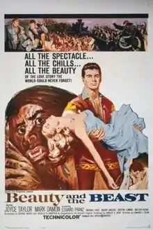 Beauty and the Beast is a 1962 American romantic fantasy film directed by Edward L. Cahn and starring Joyce Taylor and Mark Damon. It is based on the 18th century fairy tale Beauty and the Beast written by Jeanne-Marie Leprince de Beaumont[1] and features title creature make-up by the legendary Jack Pierce.