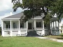Beauvoir was built by James Brown, a planter and entrepreneur, in 1848 and was completed in 1852. In 1873 the property was sold to Frank Johnston and soon thereafter to Samuel and Sarah Anne Ellis Dorsey.[4] They operated the plantation to cultivate cotton. Sarah Dorsey was a novelist and historian, who wrote a biography of the Louisiana wartime governor, Henry Watkins Allen. It has been considered an important contribution to the Lost Cause literature.[5] Born and reared in Natchez, Mississippi, she was part of the prominent Percy family in the South. After her husband, who was older, died in 1875, the widow Dorsey lived in the main house with her half-brother Mortimer Dahlgren.