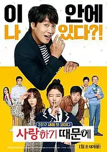 Because I Love You (Korean: 사랑하기 때문에; RR: Saranghagi Ttaemoone) is a 2017 South Korean fantasy-comedy omnibus film starring Cha Tae-hyun and Kim Yoo-jung. Directed by Joo Ji-hoong, it premiered on January 4, 2017.[2][3] This movie starring Cha Tae-hyun is produced by his elder brother Cha Ji-hyun[4] who also produced the film The Grand Heist starring Tae-hyun.[5]