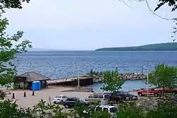 Beckwith Island is the eastern of three islands in southeastern Georgian Bay in Ontario, Canada. Its highest elevation is 226 meters (741 feet) above sea level. Like its populated neighbour Christian Island to the west, and Hope Island to the northwest, the uninhabited island is part of an Ojibwa reserve. On the mainland, Cedar Point lies directly south of the island and Thunder Beach is located to the southeast of Beckwith Island. The island is a pristine, and ecologically sensitive island of over 800 acres (324 ha), featuring sandy beaches and dunes, juniper bushes, as well as the rare and protected three-pronged awn grass, plus forests of oak, maple, birch and conifer trees and no development of any kind except for simple outhouses to serve boaters, campers and picnickers. Camping is permitted but you must obtain permission in advance from the local band council on Christian Island. The eastern side of Beckwith island is often a favourite place for boats to moor. Beckwith Island and the attached "Little Beckwith" are part of the Beausoleil First Nation.