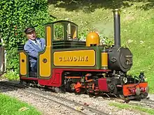 The railway currently has eight steam locomotives, two diesel and one electric.[7] A locomotive called 'Finn MacCool' also visits every summer (usually July – September) from the Belfast and County Down Miniature Railway Society, Northern Ireland, to help out in the peak season.[8] Other locomotives also visit during the 'Loco Week' and 'Bank Holiday Weekend Gala' in August.
