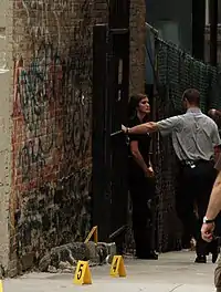 ![]() Detective Benson (Mariska Hargitay) present as Vicki Sayers (Jennifer Love Hewitt) identifies her attacker in a line-up | |