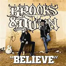 "Believe" is a song written by Ronnie Dunn and Craig Wiseman, and recorded by American country music duo Brooks & Dunn. It was released in October 2005 as the second single from their album Hillbilly Deluxe, and it won the Country Music Association's 2006 awards for Single of the Year, Song of the Year and Music Video of the Year.[1] Rolling Stone ranked "Believe" No. 33 on its list of the 40 Saddest Country Songs of All Time in 2019.[2]