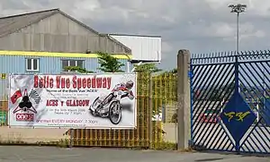 Belle Vue Stadium was a greyhound racing track in Belle Vue, Manchester, England,[2] where the first race around an oval track in Britain was held on 24 July 1926. It has also been used for motorcycle speedway, as the home ground of Elite League team Belle Vue Aces from 1988 until 2015, and from 1999 until 2019 for stock car racing and banger racing.