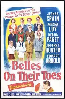 Belles on Their Toes is a 1952 American family comedy film based on the autobiographical book Belles on Their Toes (1950) by siblings Frank Bunker Gilbreth, Jr. and Ernestine Gilbreth Carey. The film, which debuted in New York City on May 2, 1952, was directed by Henry Levin, and Henry Ephron and Phoebe Ephron wrote the screenplay. It is a sequel to the film Cheaper by the Dozen (1950), based on Gilbreth and Carey's eponymous 1948 book.