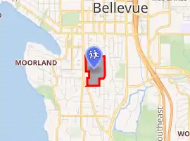 From 1930 until 1949, the school was located on 102nd Avenue Northeast between Northeast 1st and 4th Streets, a site which is now part of Bellevue Downtown Park. The school was known as Overlake High School during part of this era. Bellevue's award-winning chapter of the Future Farmers of America formed an important part of student and community life until the area's rapid urbanization led to the chapter disbanding in 1950.[3]