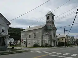 Bellows Falls is an incorporated village within the municipality of Rockingham in southeastern Vermont. It is located on the west bank of Connecticut River, and was the site at which that river was first bridged, in 1785. As a consequence, the village has since then been a transportation hub, as a nexus of water, road, and railroad routes formed there over the course of the 19th century. Industrial development grew in part due to the Bellows Falls Canal, which provided water power to a variety of industries. The village downtown grew immediately west of the canal and the primary industrial area, and its residential neighborhoods grew west and south of the downtown.[2]
