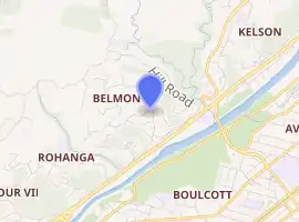 Belmont, a suburb of Lower Hutt, to the north of Wellington in the North Island of New Zealand, lies on the west bank of the Hutt River, on State Highway 2 (SH 2), the Wellington-Hutt main road, and across the river from the centre of Lower Hutt.