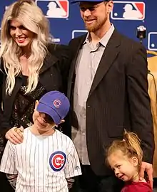 Zobrist lives in Franklin, Tennessee.[45] He and his estranged wife, singer Julianna Zobrist (née Gilmore), have three children, one of whom was born five days after Zobrist's Royals won the 2015 World Series.[46] Julianna gave birth to Blaise Royal the day after the Royals World Series parade.[47][48] In May 2019, Zobrist filed for legal separation in Tennessee on the same day that Julianna Zobrist filed for divorce in Illinois.[49] Their marital problems had led Zobrist to pause his participation in the 2019 MLB season.[50]