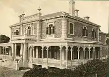 The initial allocation of section 270 was to G.F. Shipster,[3] who built a single-storeyed house on the section in 1844. With the subdivision of the section (i.e. bisection) by Glen Osmond Road, it passed to Robert Cock;[4] Shipster purchased section 300 in 1844 from J. Grainger, but died on 30 December 1844 at 'Kensington House' in what is now known as Kensington Park.[5]