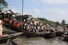 Approximately two-thirds of the Bangladesh people work in agriculture and grow crops on the fertile floodplains of the delta. The major crops that are grown in the Ganges Delta are jute, tea, and rice.[4] Fishing is also an important activity in the delta region, with fish being a major source of food for many of the people in the area.[7]