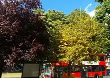 Other buses including the 213 to Kingston can be caught (heading southbound towards Sutton railway station) from the stop opposite Sutton Green and Victoria Gardens.[20] Sutton Common railway station, which has trains to Sutton, Wimbledon, London Bridge, London Blackfriars, and St Albans, is a short walk west from Angel Hill and pedestrian access to the main part of Benhilton is via a footbridge across the cutting.