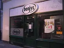 The first branch of Benjys was opened in 1989 in Islington by Paul Benjamin.[1] The Benjamin family expanded the company offering low priced takeaway food, until it was sold for around £40 million in Aug 2000.