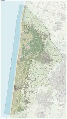 North of the town of Bergen are the Schoorlse Duinen, a nature area with the highest and widest dunes of the Netherlands, which reach about 59m (195 ft) above sea level, and are more than 5 km (3.1 mi) wide in some places.