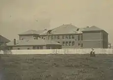 The main building of the high school suffered moderate damage in the form of toppled chimneys, broken windows and some weakened walls as a result of the 1906 San Francisco earthquake. Professor Andrew Lawson of the University of California included one of his own photographs (shown at lower right) of the damage in his famous report issued in 1908.[4]