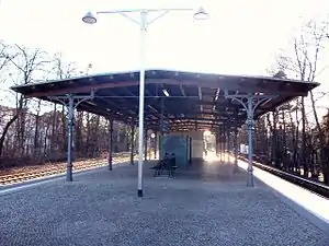 The station is south of the lake Schlachtensee and was opened in 1874.[2] The service was temporarily suspended because of the low use because of the S-Bahn-Boykott during the Cold War, to demonstrate against the GDR who also operated the S-Bahn in the west of berlin, despite the wall. In 1970, the tracks were dismantled. It was not until 1985 that operations could be resumed.[3]