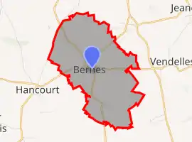 Bernes is situated on the junction of the D15 and D87 roads, some 10 miles (16 km) northwest of Saint-Quentin.