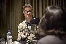 In his project "and. learning English has no use"[18] he used reproductions of his artworks to overcome language barriers[19] that he encountered during a stay in Nanjing, where he used the aesthetics to create modes of communication to make it possible for him and the Chinese students to work together.[20] The students reproduced his artworks, and by this a direct form of communication was developed between them.[21] In 2012, he was invited by artist AA Bronson and Printed Matter Inc. for the New York Art Book Fair,[22] where he showed Austrian art books and publications in the MoMa/PS1.[23][24] His lectures were held in institutions like the University of Arts and Industrial Design Linz,[25] the print room in Amsterdam,[26] the Galerie für Zeitgenössische Kunst Leipzig,[27] and the Ö1[28] of the Castle Sigharting.[29] He collaborates with many curators and artists, including Diana Baldon [30] and Franz West.[31]