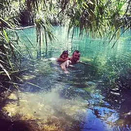 The Berry Springs Nature Park is a public recreation area that includes bushwalking trails, picnic areas and a kiosk where refreshments are available. The park is centred on the springs and catchment which are the source of water for Berry Creek. The clear waters of the pools created by the springs are ideal for observing the aquatic life within, and access is provided for swimming to escape the tropical heat. Information displays are provided detailing the native plants, wildlife and history of the area. The park is open all year round, but during the months of October - April may be closed for swimming depending on local conditions.[9]
