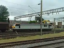 ![]() British Rail Class 92 locomotive 92018 at Bescot in June 2005 | |