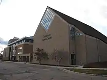 The church's first services in English started in 1893, on a bi-weekly basis.[1][7] The 6th pastor, Olof Bodien, came in 1893 and pastored until 1912. During that time the church suffered a fire (December 3, 1893) and a tornado (August 1904). [13] By this time a number of notable Swedish Baptists were members of the church.[14][15] The church had two pastors from 1912–18, when the 8th pastor, Eric Carlson, arrived. Membership rose to 834, and language tension grew during that time between old (Swedish) and young (English). The 9th pastor, Anton Sjolund, came in 1928, and membership reached 1,204. Services in Swedish continued until the mid-1930,[1][7] but on January 1, 1936, the church voted to move all services to English, except for one Swedish Sunday School class.[1] Nine years later, on April 13, 1945, First Swedish Baptist voted to change its name to Bethlehem Baptist Church (the same year that the Swedish Baptist General Conference in America dropped "Swedish" from its name).[4][1][6][16]
