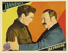 Betrayal is a 1929 American silent drama film produced for Famous Players-Lasky and released by Paramount Pictures.[1] The film is the last silent film directed by Lewis Milestone,[2] the last silent performance by Gary Cooper,[3] the last silent performance by Germany's Emil Jannings,[4][3] and the only onscreen pairing of Cooper and Jannings.[1] It is considered a lost film.[5]
