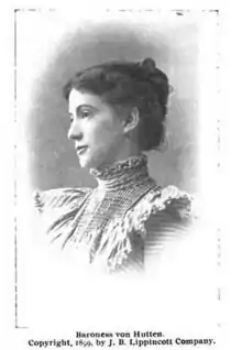 Bettina Riddle (February 14, 1874 – January 26, 1957), also known as Betsey Riddle, and later as Baroness von Hutten, was an American-born novelist, specializing in historical fiction. As an American in England during World War I, she was arrested and fined as an enemy alien, because she had a German ex-husband.