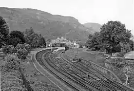 Extensive passenger and goods facilities were however provided at Betws-y-Coed, where the station, which was opened in 1868, adjoins the London to Holyhead A5 turnpike road and was thus ideally located to serve many isolated communities in Snowdonia and also the rapidly developing tourist industry. In the LMS timetables the station was listed as "Bettws-y-Coed - Station for Capel Curig".[2]
