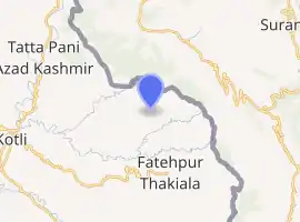 Bhimber Gali is a village in the Poonch district of Jammu and Kashmir, India. It is often called BG locally as an abbreviated form of Bhimber Gali. It is named after a mountain pass "Bhimber Gali" on the mountain ridge separating the Poonch River and the Rajouri Tawi basins. Bhimber Gali is the point at which four roads meet, one from Hamirpur Balakote, second from Rajouri via Manjakote, third from Mendhar Tehsil and fourth from Poonch Via Surankote. This area borders Pakistan administered Kashmir and thus the surrounding areas often remain in news for cross LoC ceasefire violations.