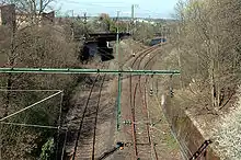 Bietigheim-Bissingen station is a junction station in the town of Bietigheim-Bissingen in the German state of Baden-Württemberg where the Württemberg Western Railway separates from the Franconia Railway. With its eight station tracks it is the largest station in the district of Ludwigsburg. It is served by regional trains, line S 5 of the Stuttgart S-Bahn and line S 5 of the Karlsruhe Stadtbahn.