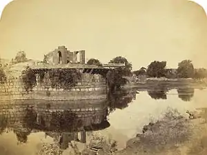 Two centuries later, in 1877, during the British rule, due to scarcity (famine conditions) Bijapur city was found in a desolate and deserted state that was compared to similarly placed ruined cities of Baalbek in Bekaa Valley of Lebanon or Pompeiopolis in Rome. The palaces and tombs in the fort were in ruins. Bijapur was like the city of the dead, for there was no water or food in the city.[8]